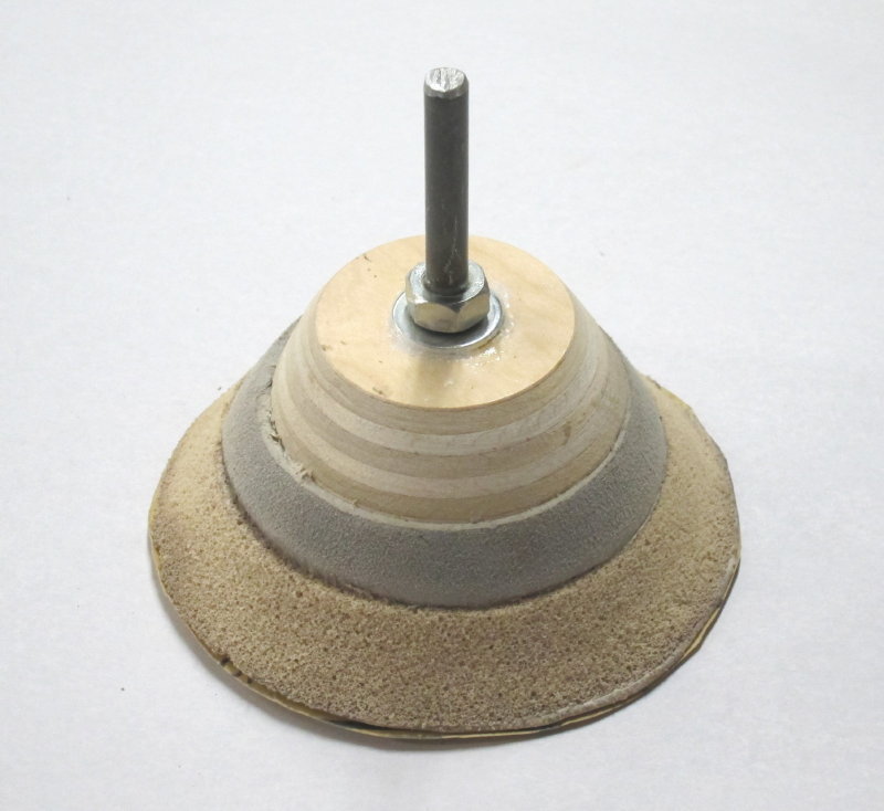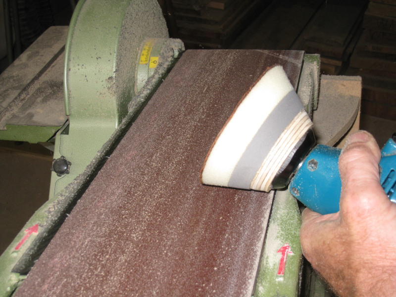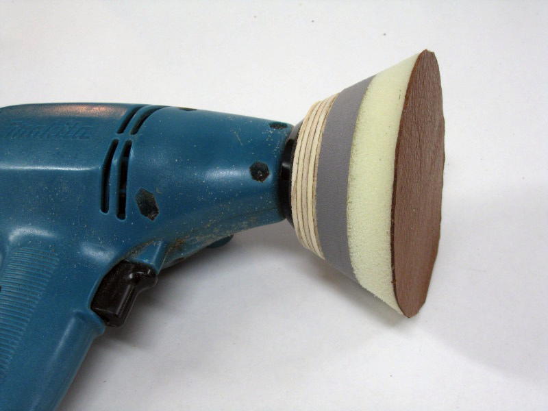 foam-backed leather-faced sanding system. I use the thinnest leather I can