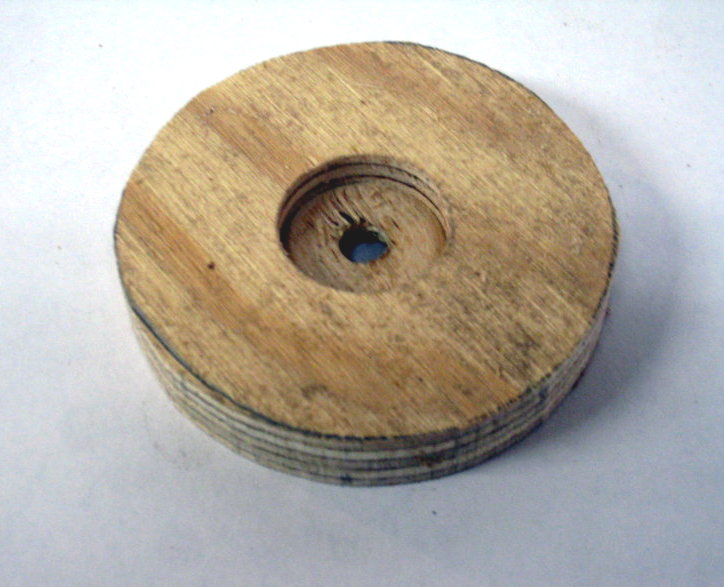 All the layers ready to glue up. Each disc is larger ending up with leather around 4" diameter.