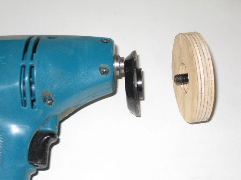 The sander ready to bolt plywood on securely, i.e. good and tight with the M8x20 socket screw that comes with the sander.