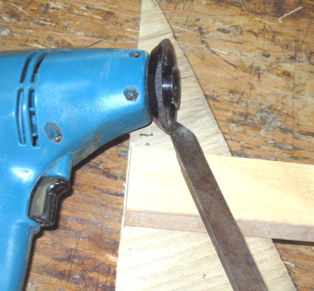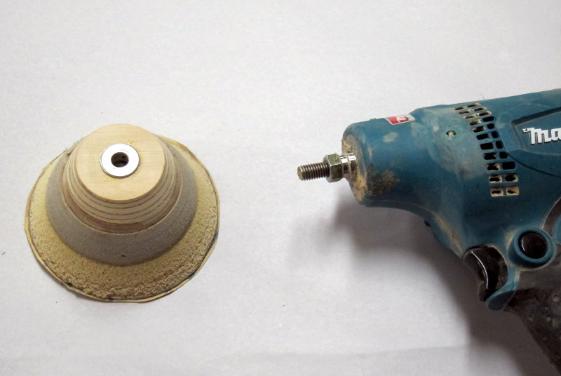 And a final alternative for chucking into a regular drill, a 1.25 x 8 mm bolt with head sawn off as a mandrel,