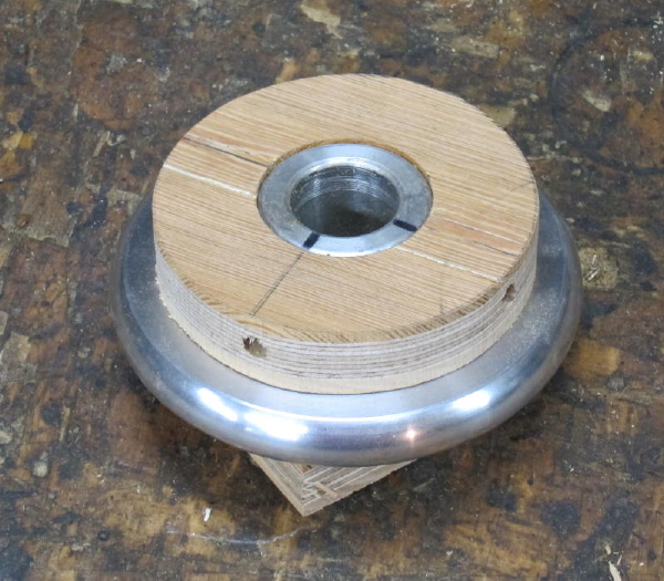 A piece of multi-veneer plywood is fitted to the handwheel and set-screwed firm.