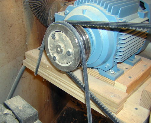 Commensurate with the hand-held sander is a braking system on the lathe. When I had a variable speed DC motor I found it acted as a brake in the opposite direction it was set to run. This helped hold the bowl in place as I was sanding. When I switched to variable speed AC motor I lost this feature. But then I passed a length of 3/8" O.D. rubber gas line from the auto parts store around the 4" drive pulley, and voila, a slip brake in both directions, easy to nudge forward with a hand but firm enough to resist the torque of sanding. I upgraded to a triple drive pulley so a groove is always available to drop the rubber over for sanding. A real advantage to this system is it frees up both hands to hold the sander. This greatly reduces the stress on the forearm that I found left me aching after a period of one-armed sanding. Plus, using two hands you are able to "float" the sander in your hands as you arc back and forth over the complex curves of a bowl, as well as gently sand around the top or the bowl to ease the sharp edges.