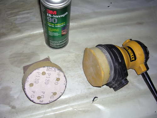 to use 3M 77 Spray Adhesive to glue the foam to sander, leather to foam, but I find the 3M 90
